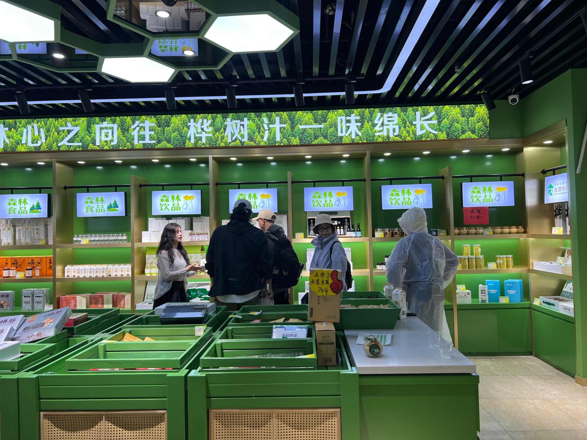 “咱们不只是卖桦树汁,更是传递小兴安岭的森林密语。”“九珍十八品”伊春馆负责人苏佩华说。这家近200平方米的直营店,仿桦树皮纹路装饰与八大品类展区相辅相成。游客倾听“清晨收集、48小时锁鲜”的工艺故事,品味清冽桦树汁,似乎置身小兴安岭。开业半年,该店日均营业额破万元,更带动伊春其他森林食物企业订单增加——有浙江客人在馆内品味了部分伊春食物后,当即与“九珍十八品”伊春馆达到协作,返乡在自营店肆中增设了伊春食物出售专区。